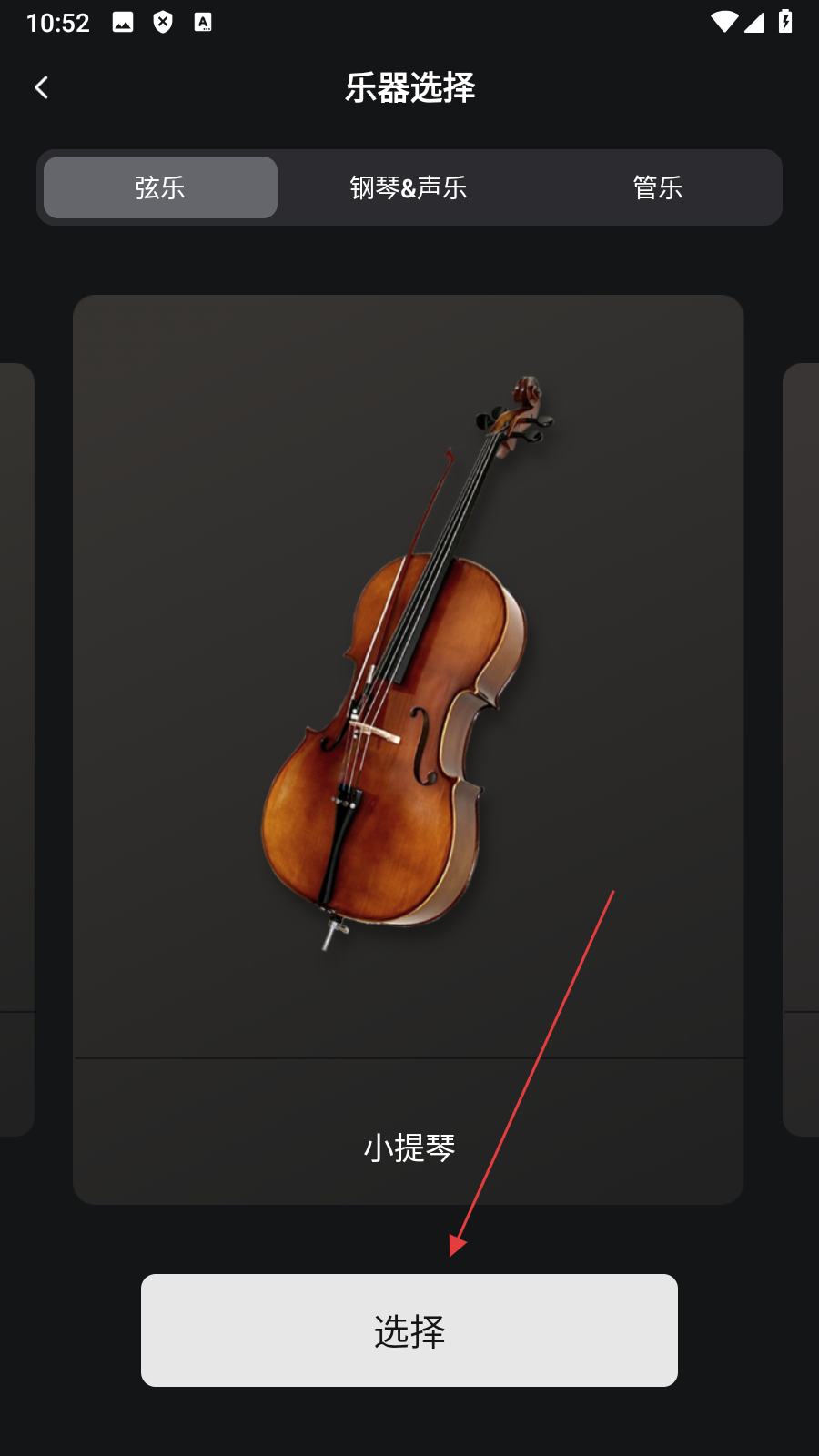 3、在乐器选择界面,选中需要的乐器后点击【选择】,进入小提琴乐谱库。