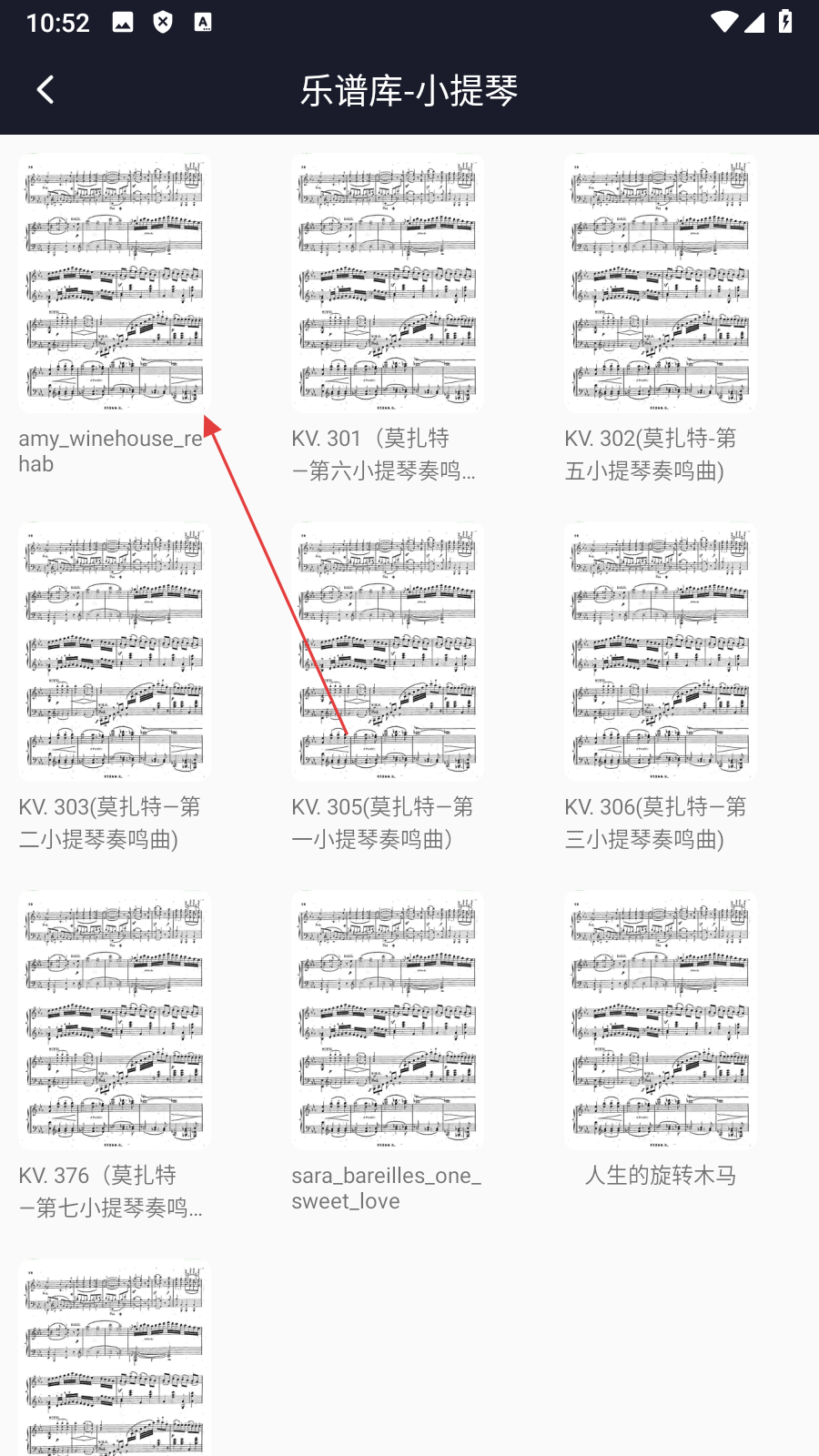 4、在小提琴乐谱库中,点击【心仪的乐谱】,即可查看该乐谱内容。