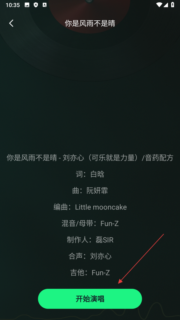 3、在歌曲详情页,点击【开始演唱】,进入歌曲录制界面。
