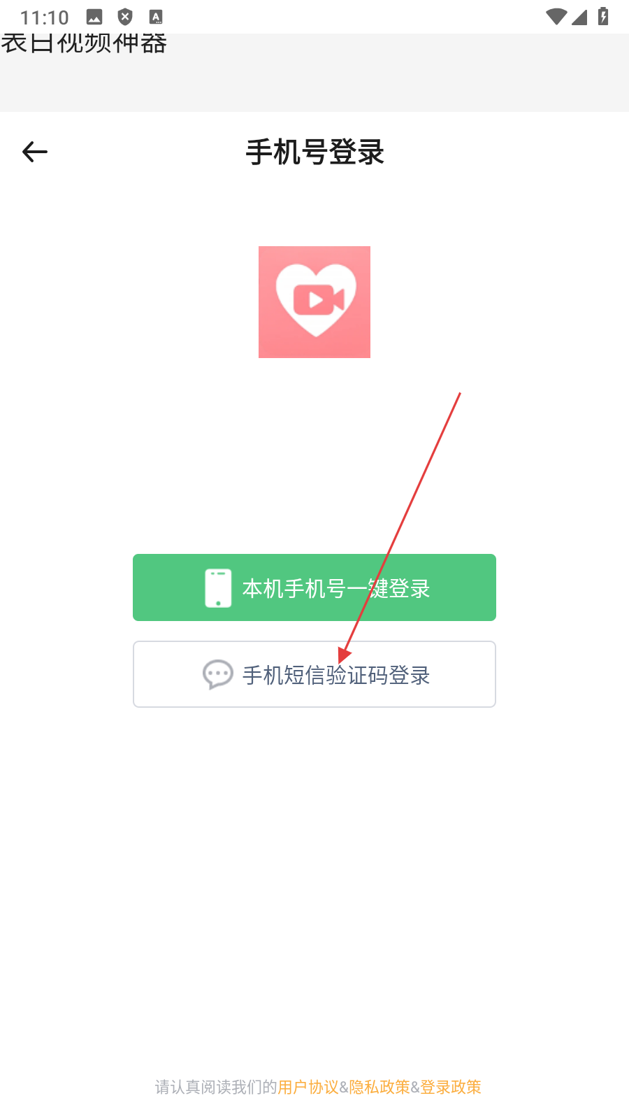 3、在登录选择界面,点击【手机短信验证码登录】,进入手机号登录页面。