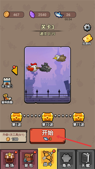 1、在关卡界面点击【开始】按钮,进入第3关的战斗准备阶段。