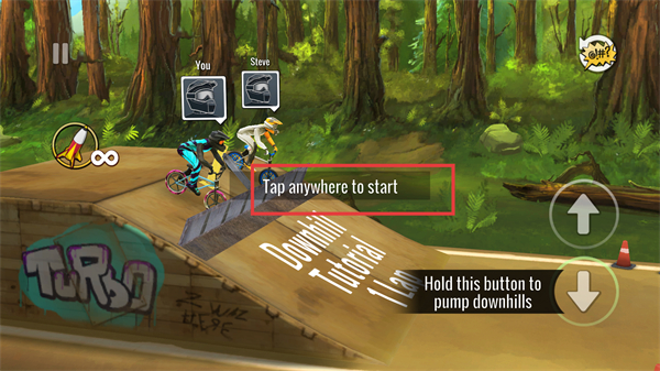 2、在关卡中,点击屏幕任意位置开始比赛,学习山地自行车的基本操作。