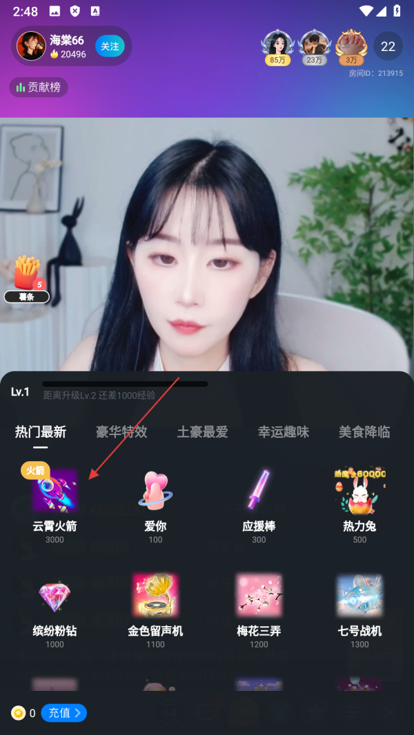 2、免费礼品体系完善,无需付费即可获取多样动画特效礼品,既满足用户向主播表达喜爱的需求,即使不消费的用户也能深度参与直播。