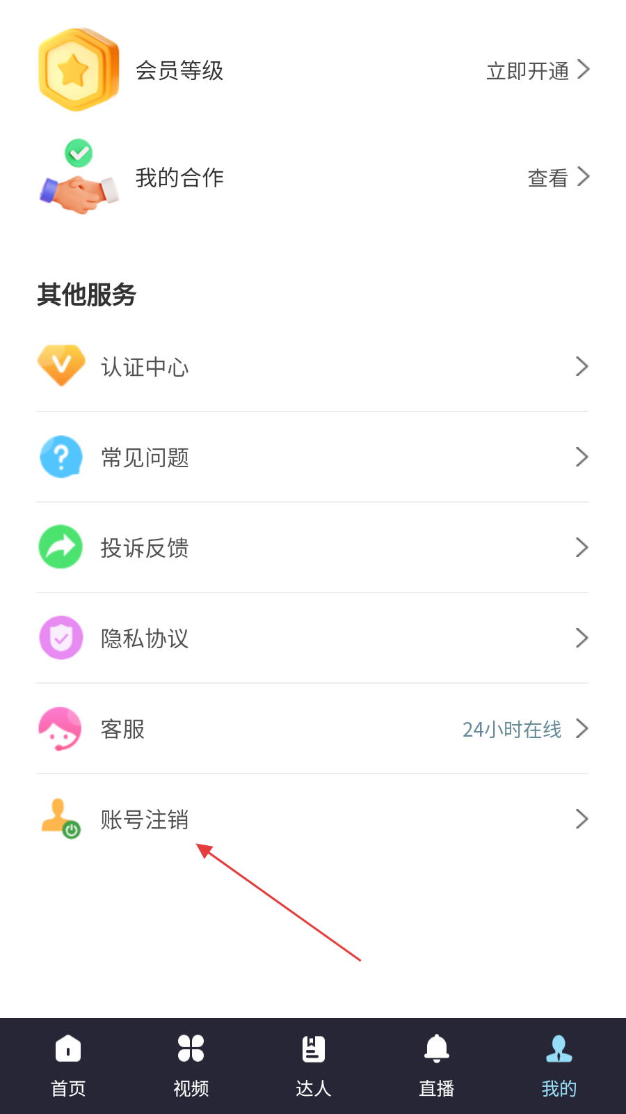 3、在注销页面,找到【账号注销】选项,点击进入注销页面。