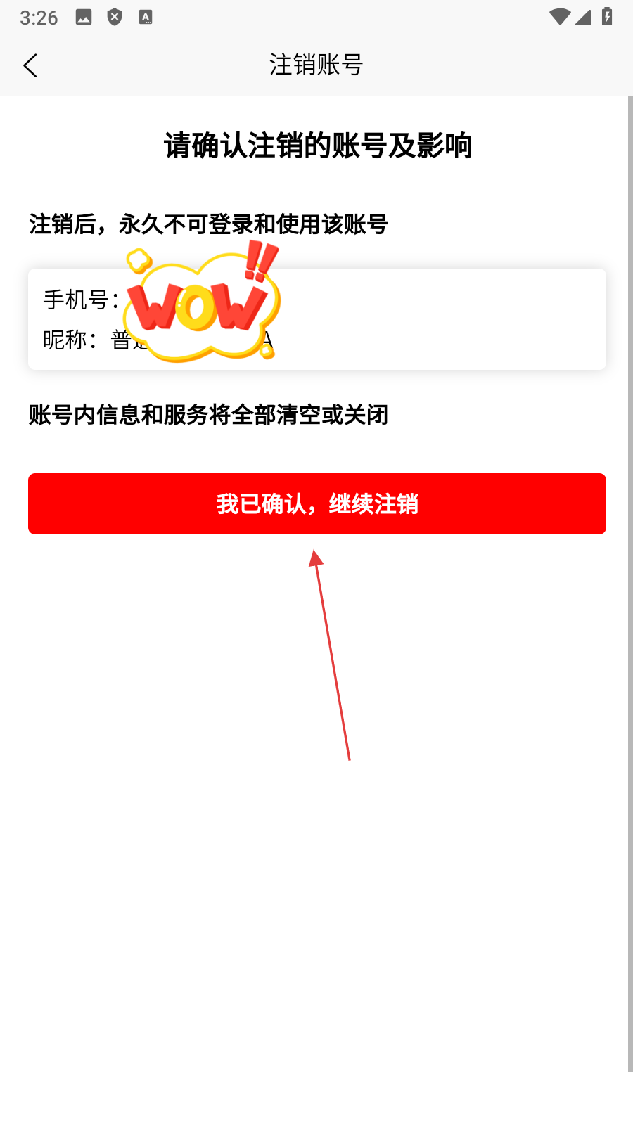 4、点击【我已确认,继续注销】,即可完成账号注销操作。