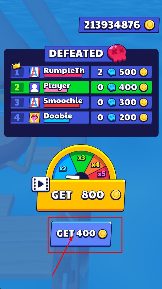 4、挑战结束后,点击【GET-400】按钮,可领取400金币奖励,积累资源。