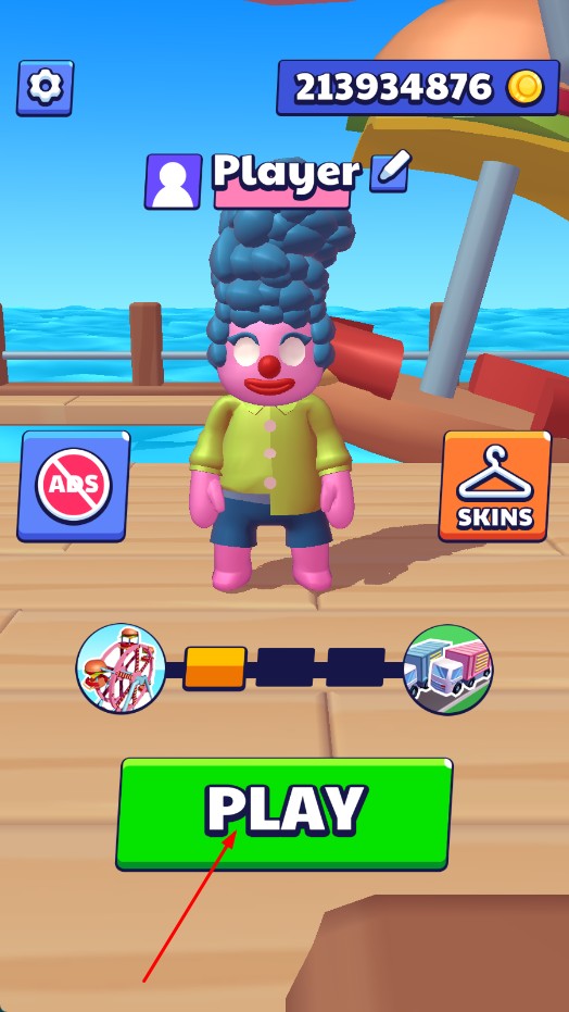 1、点击绿色【PLAY】按钮,操控粉色角色开启挑战,进入场景。