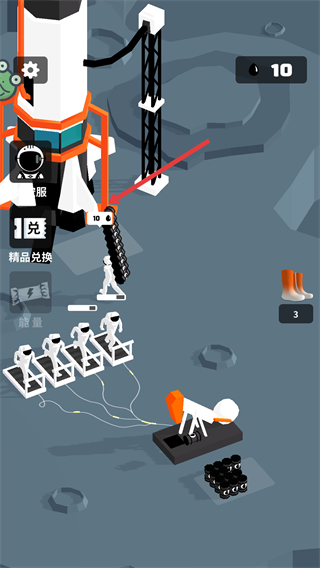 2、集齐资源后,激活装置生成多个宇航员,同时获取【10-数值】道具,推进火箭发射准备流程。