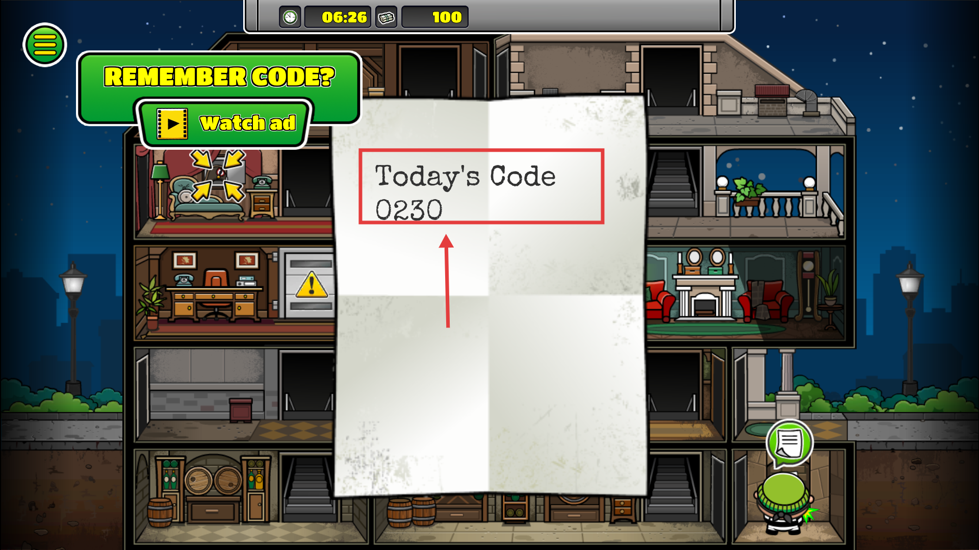 4、记住【Today'sCode】中的【0230】,后续遇密码锁输入该数字,解锁门或箱子推进关卡。