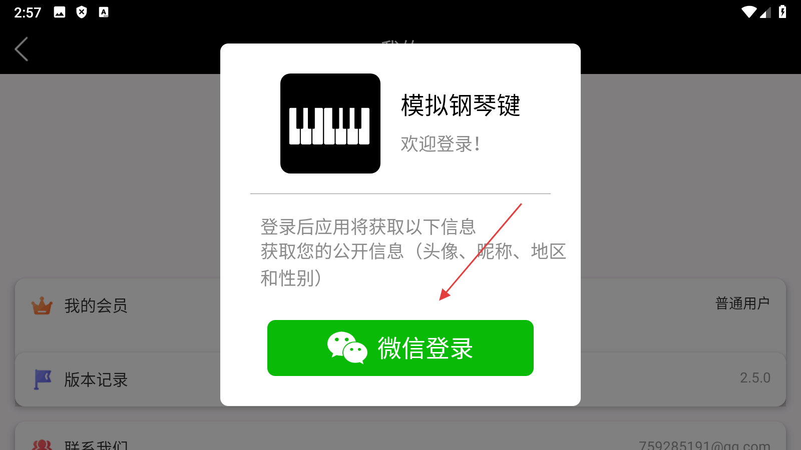 4、在登录提示弹窗中,点击【微信登录】,即可完成微信账号登录操作。