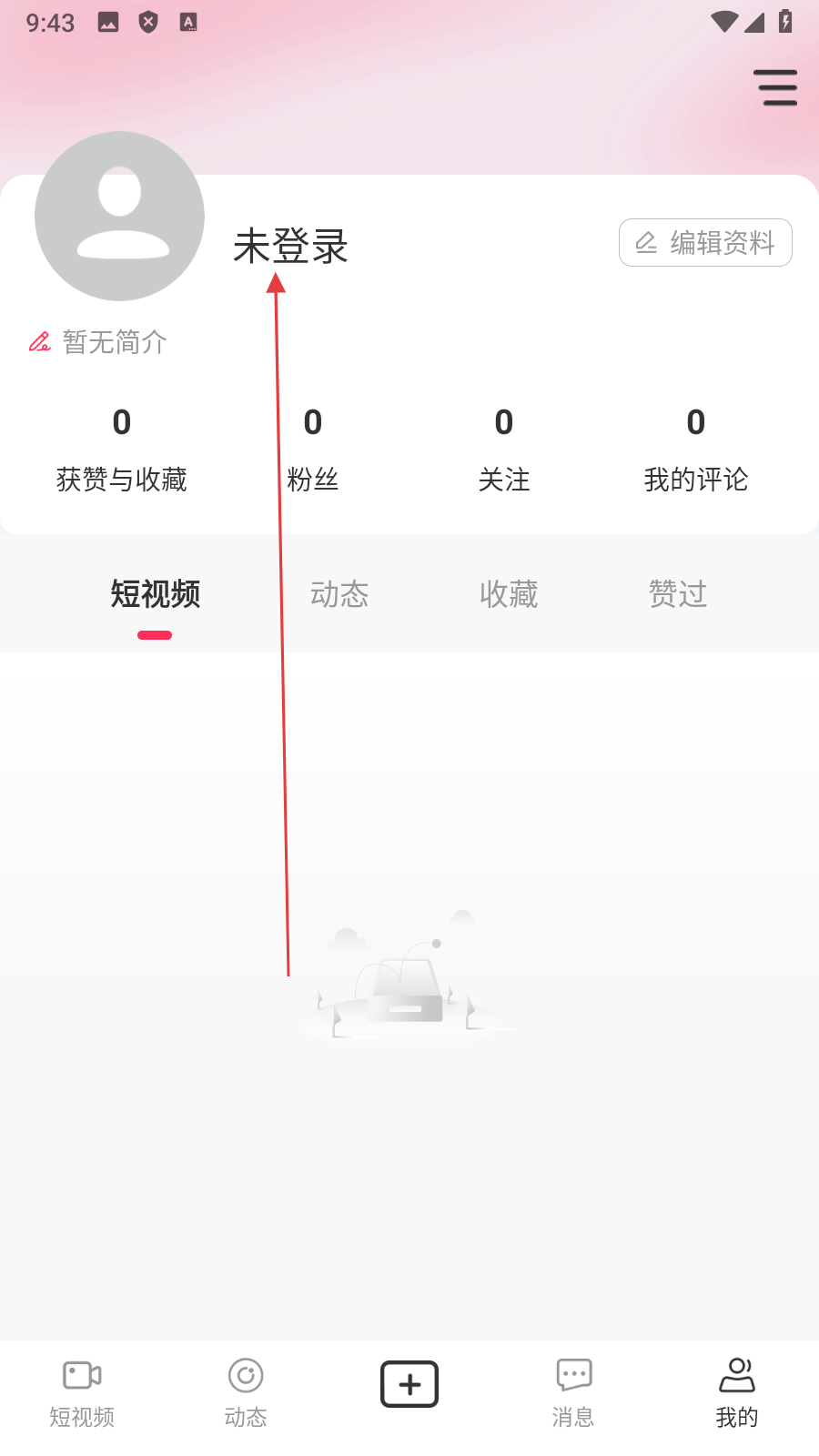 1、在短视频页面,点击底部【我的】,进入个人页面。
