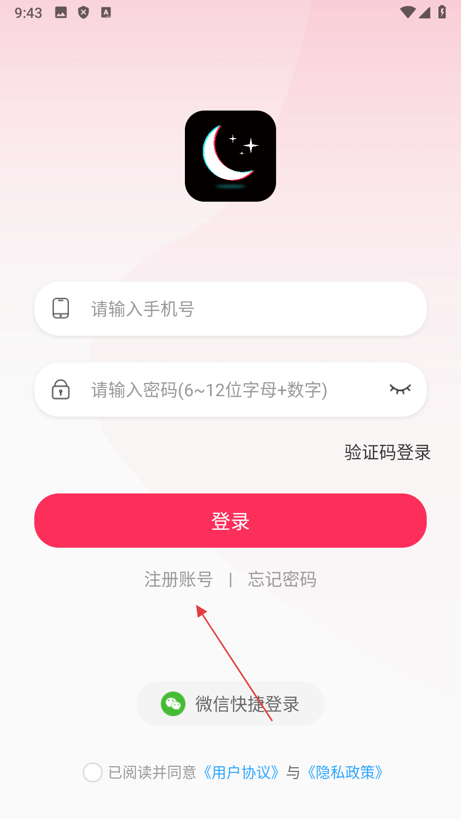 3、在登录页面,点击【注册账号】,进入注册页面。