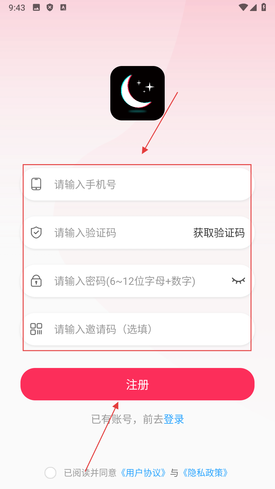 4、填写【手机号、验证码、密码】等信息后点击【注册】,即可完成账号注册操作。