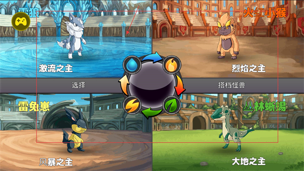 1、在初始选择界面,可挑选不同属性的怪兽作为初始伙伴,不同怪兽对应水流、火焰等属性,属性间存在克制关系。