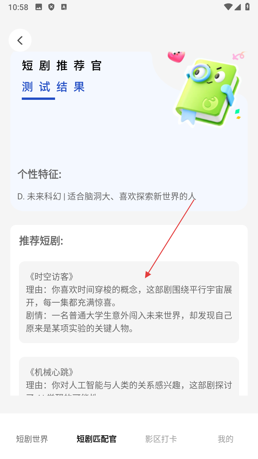 4、完成全部答题后,即可查看【测试结果】,找到符合用户口味的影视作品。
