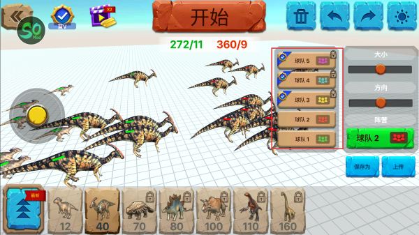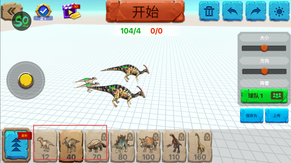3、放置恐龙组建队伍,调整大小、方向等属性,准备战斗。