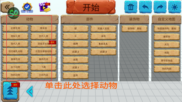 2、单击选择动物区域,挑选合适的动物,为后续布局做准备。