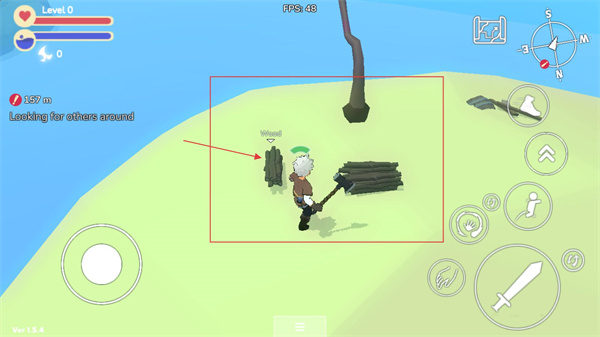 2、砍伐树木后会生成【Wood】堆,靠近资源堆可自动拾取木材,积累这类资源以满足后续合成、建造的物资需求。