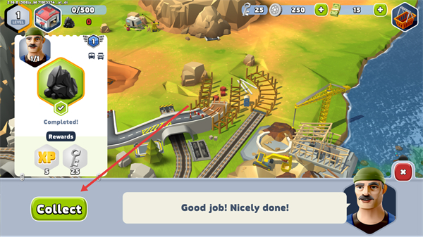 1、完成资源收集任务后,及时点击【Collect】领取奖励,包括经验(XP)和钥匙等资源,助力游戏进程。
