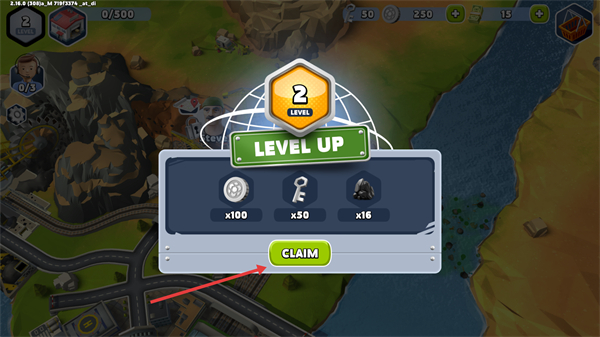 3、升级等级(如从1级升至2级)时,可获得丰厚奖励,点击【CLAIM】领取,提升游戏的整体运营能力。