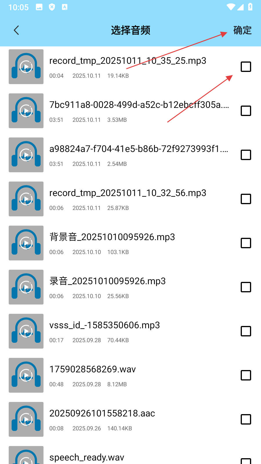 2、在选择音频页面,【选择音频】后点击【确定】,进入音频裁剪编辑页面。