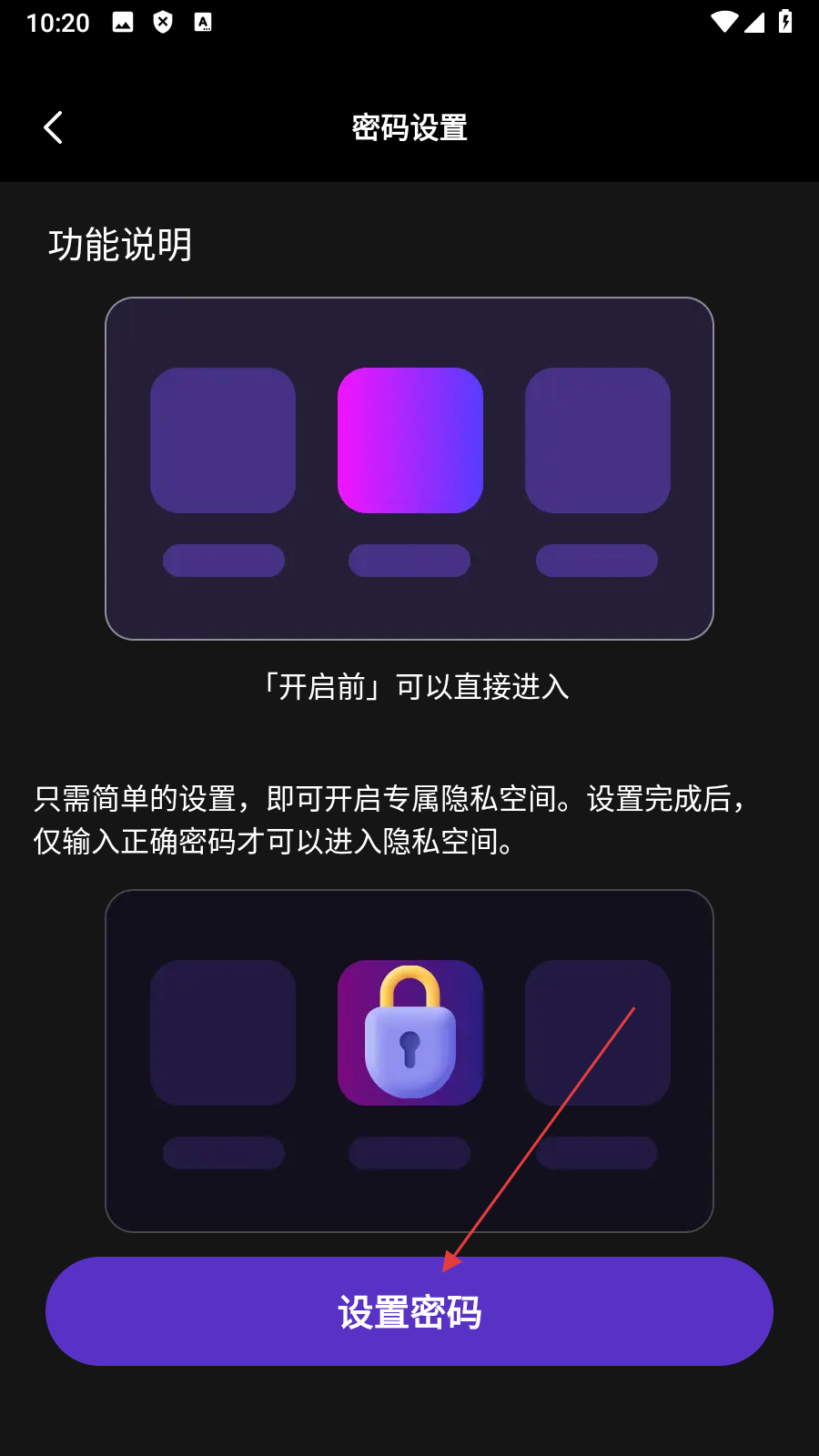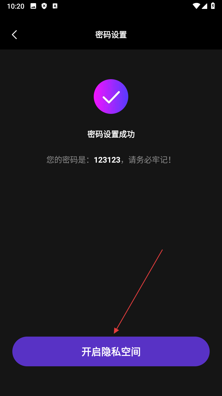 4、密码设置成功后,点击【开启隐私空间】开始使用,即可完成播放器加密操作。