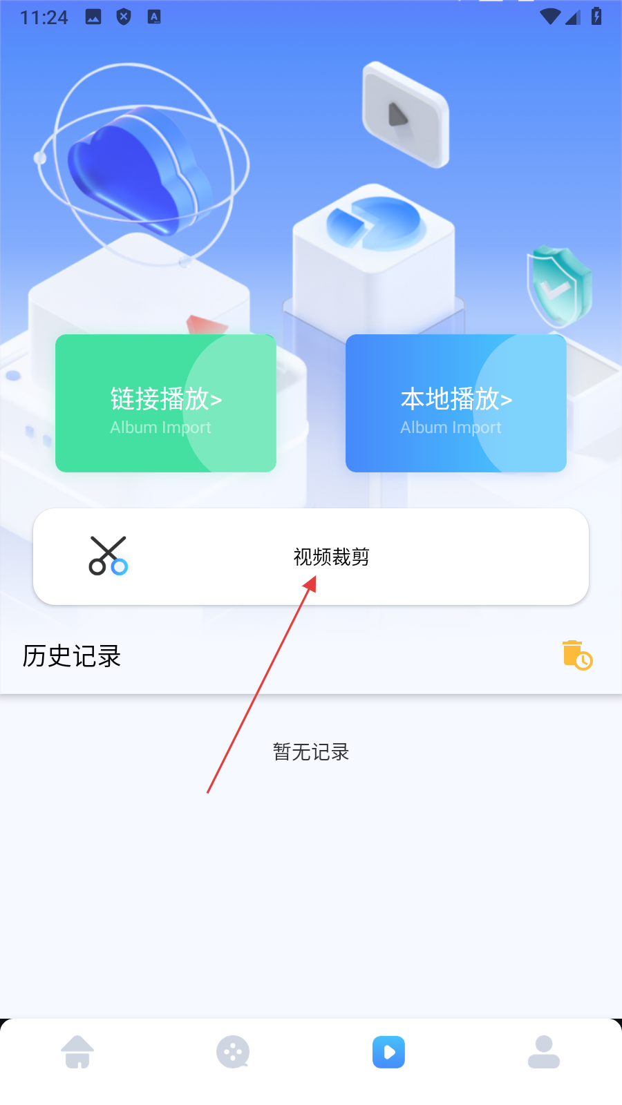 2、在视频功能页面,点击【视频裁剪】,进入视频选择页面。