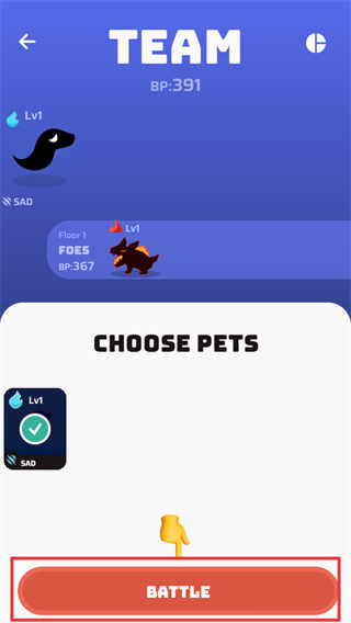 3、在队伍选择界面确认选中的虚空宠物后,点击【BATTLE】按钮进入战斗,搭配合适宠物提升战力。