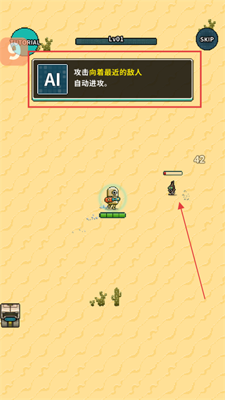 4、收集对自身有益的装备与物品提升生存能力,若被怪物击杀可选择复活或领取奖励,升级后再次挑战。