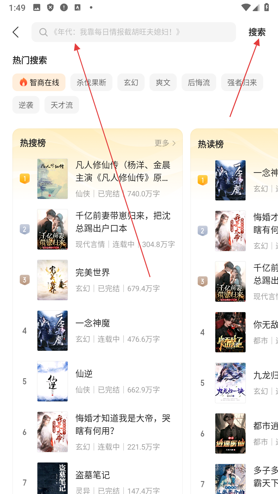 1、点击【顶部搜索框】,进入搜索页面。
