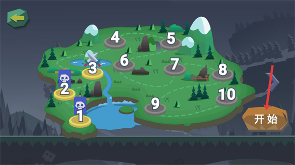 1、在地图界面,点击【开始】按钮,选择关卡进入挑战。