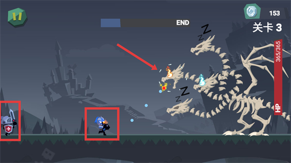 2、在关卡3中,点击箭头所指的龙头进行攻击敌人。