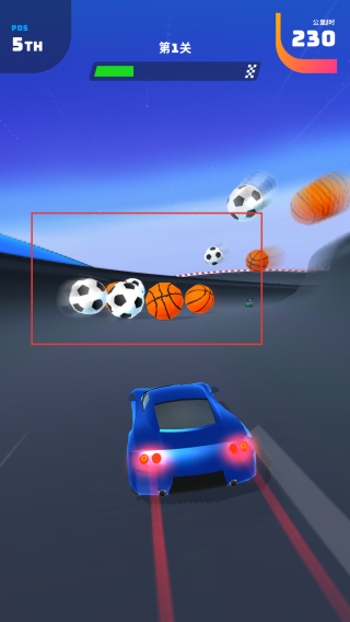 3、在赛道上躲避足球、篮球等障碍,努力超越前车。