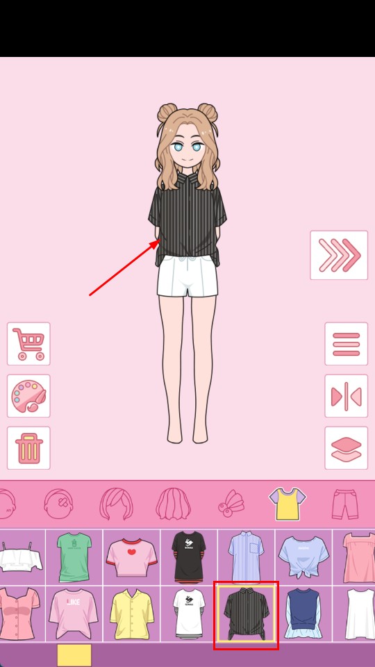 2、接着,从上衣栏里选择合适的上衣,搭配角色造型。