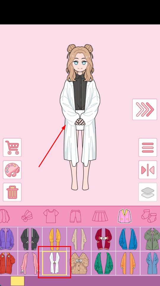 4、还能从外套栏内,挑选合适的外套,为角色增添层次感,完成整体装扮。