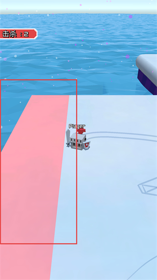 2、利用红色框内的区域,将敌方角色挤入水中,完成击杀,提升击杀数。