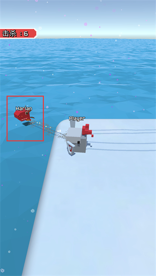 3、追击红色框内的敌方角色,将其推入水中,不断增加击杀数,扩大游戏优势。