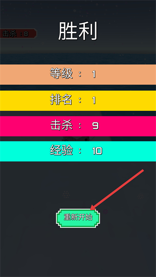 4、获得胜利后,点击【重新开始】按钮,开启下一局雪人大作战的挑战。