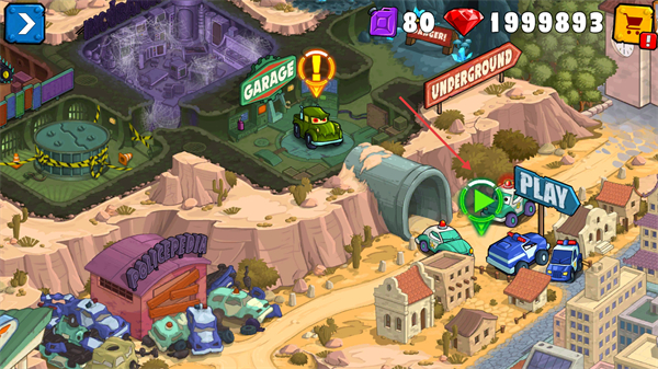 1、点击【PLAY】进入越野战车冒险游戏场景,开启沙漠越野竞速与战斗之旅。