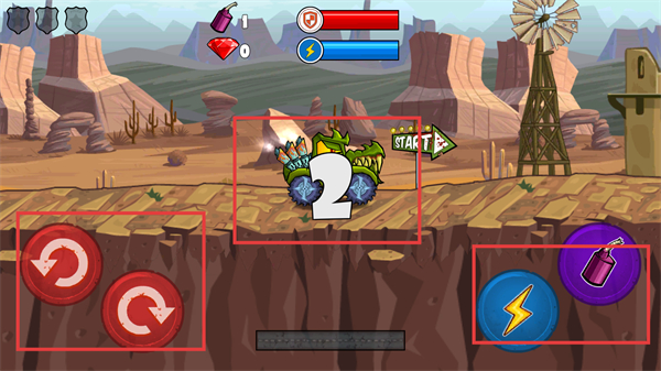 2、利用方向控制按钮调整战车行驶方向,同时可使用闪电和炸弹道具,提升战车的战斗和竞速能力。