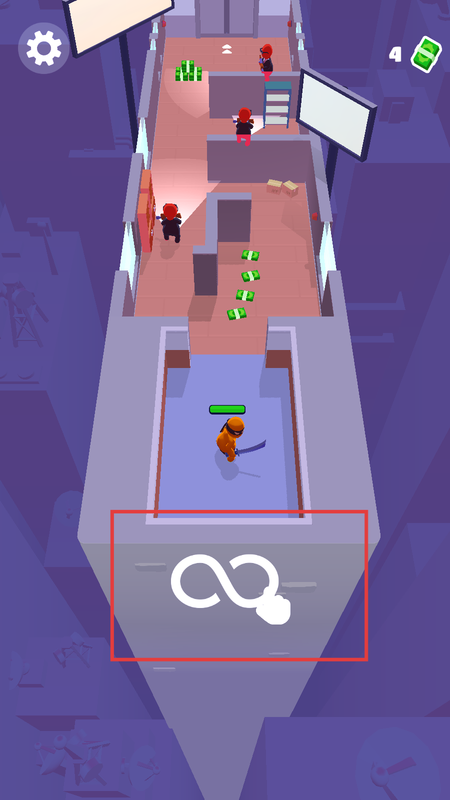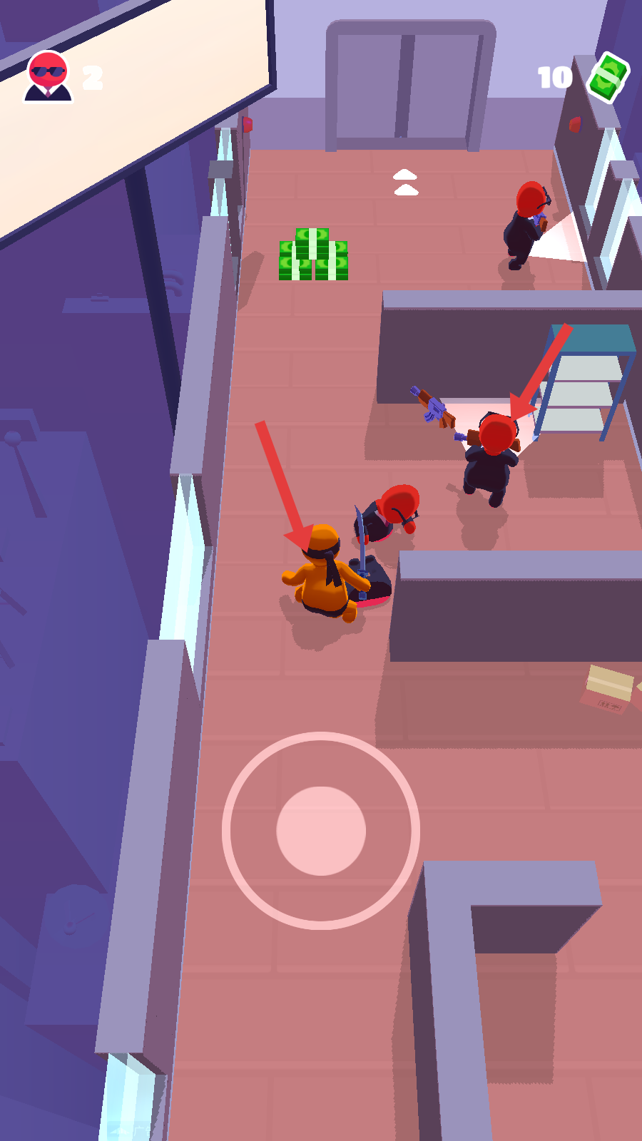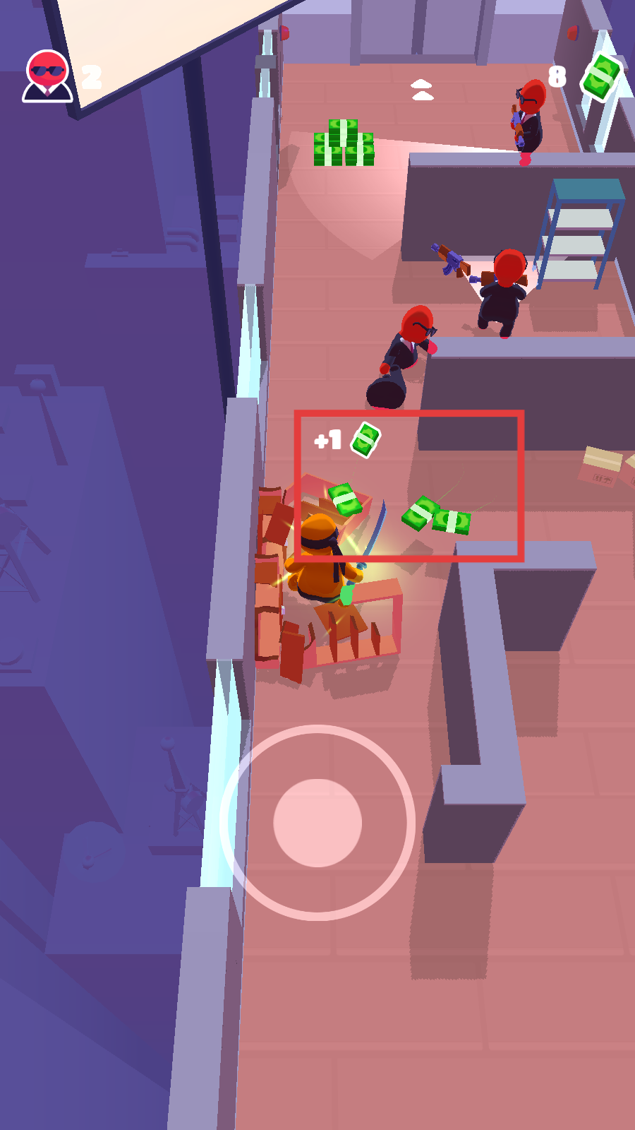 2、控制角色收集【绿色钞票】,注意避开敌人。