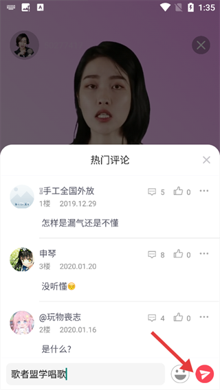 4、内容填写完成后,点击输入框右侧的发送按钮,发布该评论。