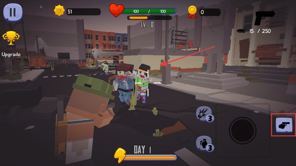 3、卡通像素画风搭配方块造型僵尸,削弱恐怖感的同时增添趣味,轻松氛围里享受射击刺激。