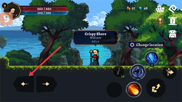 3、切换至【Crispy-Shore-Level-15】区域,通过【←】【→】按钮操控角色移动,探索该区域内容。