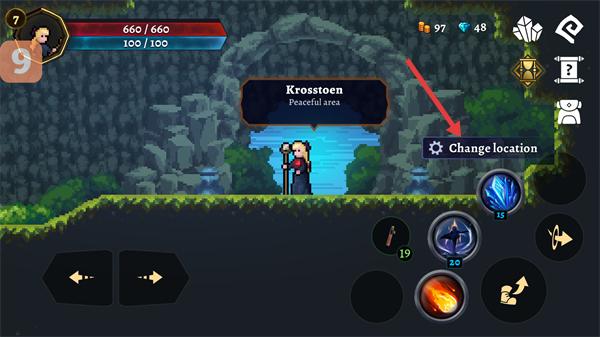 2、到达【Krosstoen-Peaceful-area】区域,点击【Change-location】按钮,可切换至其他场景探索。