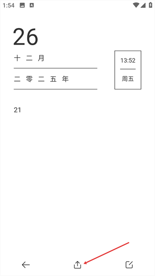 2、在日记详情页,点击底部中间的向上箭头样式按钮。