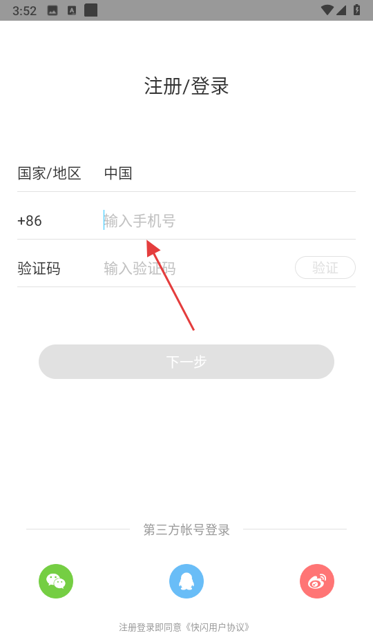 2、在【输入手机号】栏填写注册使用号码。