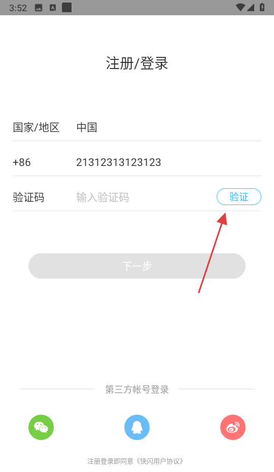 3、填手机号后点【验证】获取登录验证码。