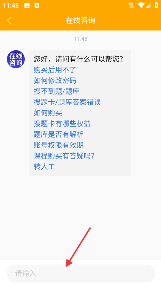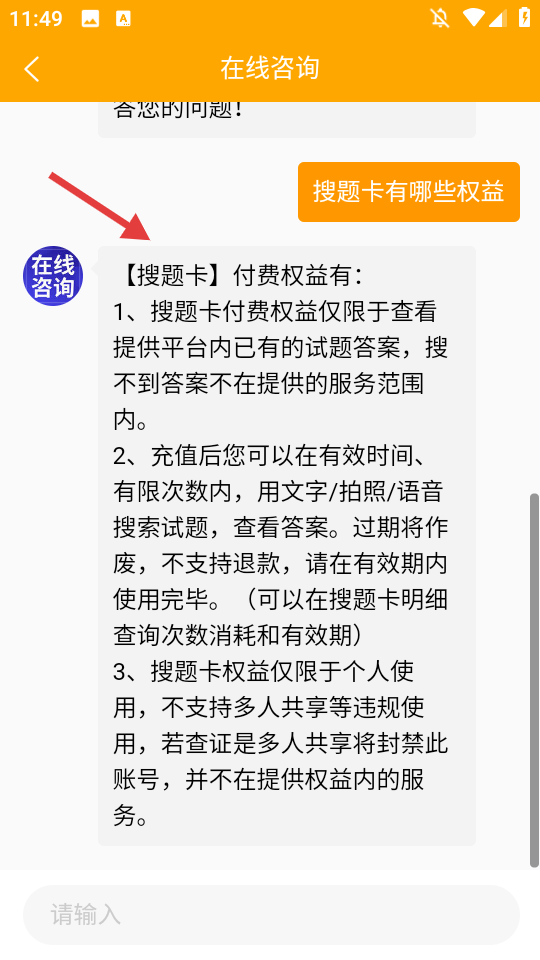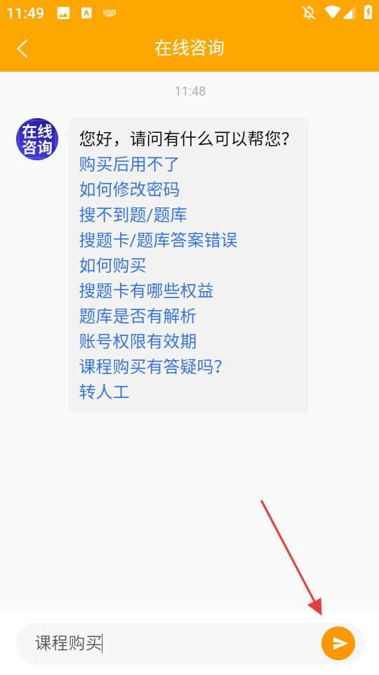 3、点击输入框右侧的发送按钮,提交咨询问题。