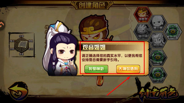 1、创建角色时,依据自身经验选【我是萌新】-【大师你懂的】对应选项,匹配引导模式能更快适应游戏。